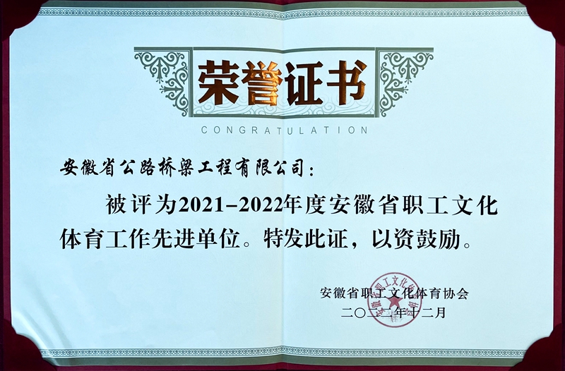 喜訊!安徽路橋獲“安徽省職工文化體育工作先進(jìn)單位”榮譽(yù)稱號(hào)