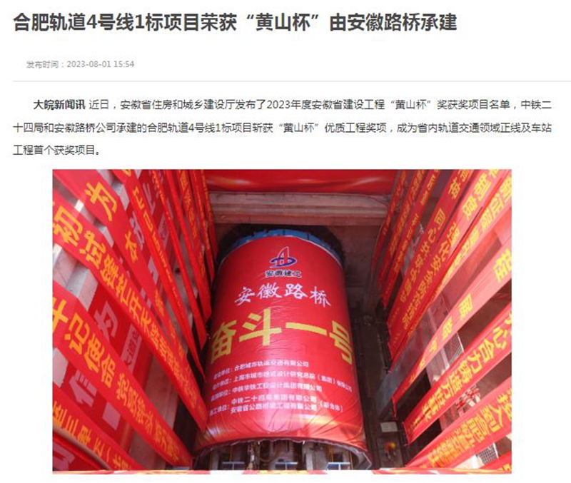 近日,安徽省住房和城鄉(xiāng)建設(shè)廳發(fā)布了2023年度安徽省建設(shè)工程“黃山杯”獎(jiǎng)獲獎(jiǎng)項(xiàng)目名單,中鐵二十四局和安徽路橋公司承建的合肥軌道4號(hào)線1標(biāo)項(xiàng)目斬獲“黃山杯”優(yōu)質(zhì)工程獎(jiǎng)項(xiàng),成為省內(nèi)軌道交通領(lǐng)域正線及車(chē)站工程首個(gè)獲獎(jiǎng)項(xiàng)目。