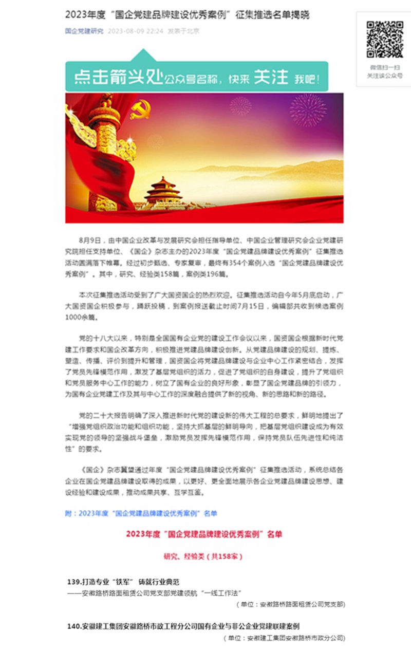 公司黨建品牌入選2023年度“國企黨建品牌建設優(yōu)秀案例”