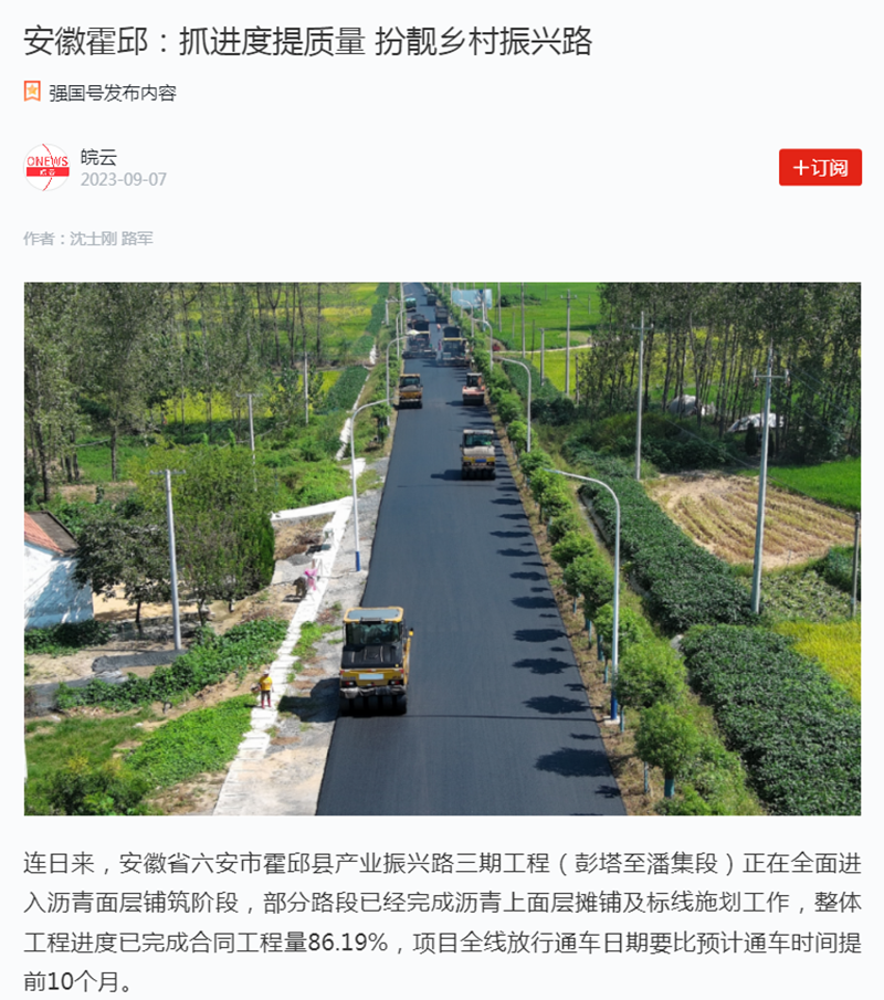 “工程項(xiàng)目啟動(dòng)以來,建設(shè)單位霍邱縣交通部門始終在沿線鄉(xiāng)鎮(zhèn)協(xié)調(diào)動(dòng)遷、桿線遷移等方面工作大力支持,建設(shè)過程中我們施工單位克服困難、頑強(qiáng)拼搏、科學(xué)務(wù)實(shí),逐個(gè)解決問題。同時(shí)將安全放在首要位置,緊抓工程進(jìn)度,把好質(zhì)量關(guān)。本期工程即將通車,屆時(shí)將給沿線百姓生活帶來便捷,為鄉(xiāng)村振興出一份力”,項(xiàng)目負(fù)責(zé)人孫成好介紹說。