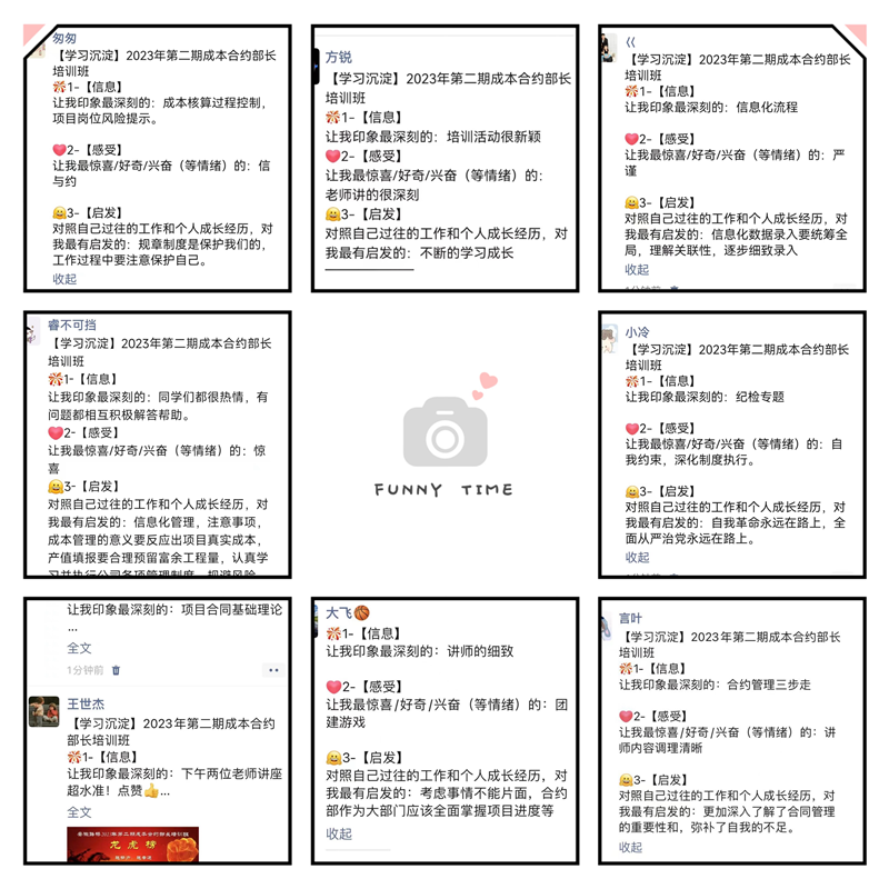 授課之余,培訓(xùn)班還安排了崗位研討與交流等學(xué)習(xí)活動(dòng),并專門開展一場(chǎng)“朋友圈分享學(xué)習(xí)心得”活動(dòng),讓大家暢所欲言,及時(shí)對(duì)外分享培訓(xùn)所獲——“信息、感受與啟發(fā)”,讓培訓(xùn)班的良好氛圍傳播至全公司,全面推動(dòng)學(xué)習(xí)型組織建設(shè)。培訓(xùn)班還開設(shè)了一場(chǎng)燒腦拓展訓(xùn)練活動(dòng)《極速60秒》,培養(yǎng)學(xué)員科學(xué)系統(tǒng)的思維方式,增強(qiáng)全局觀念。