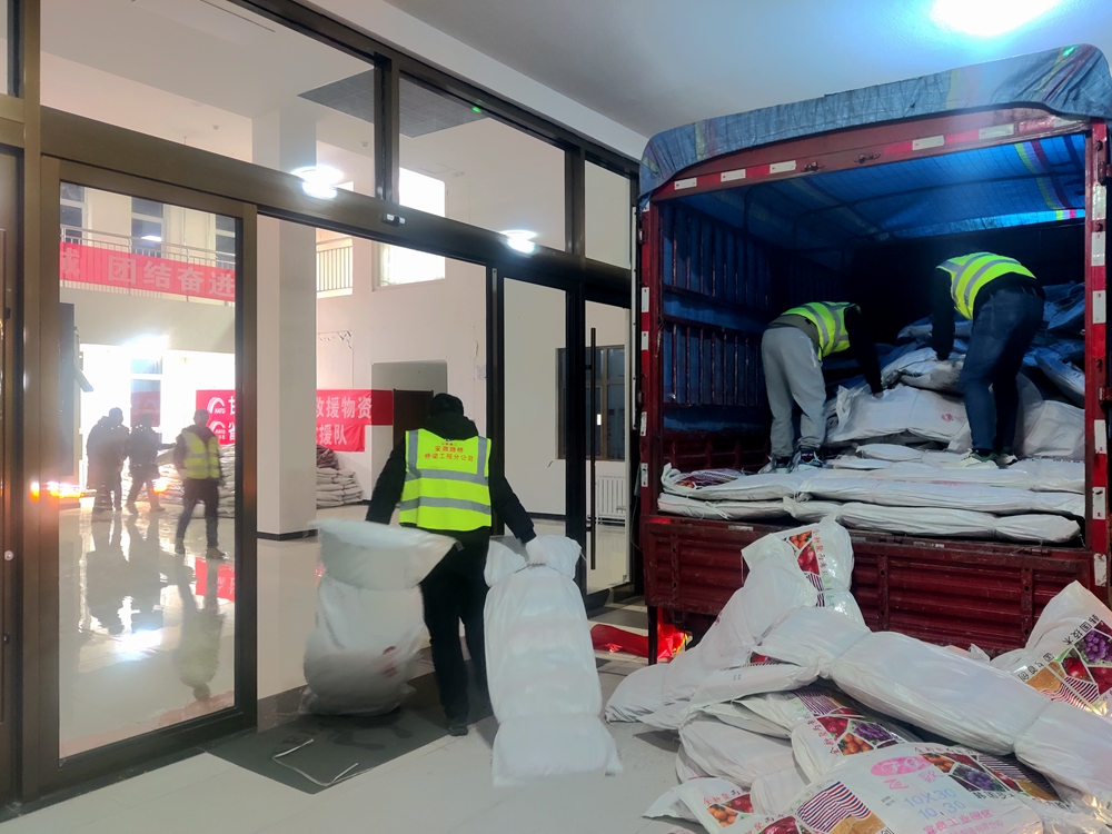 距積石山縣地震震中僅21公里的永靖縣劉家峽水庫(kù)楊塔鄉(xiāng)段環(huán)庫(kù)公路先后發(fā)生山體坍塌堵塞,嚴(yán)重阻礙交通出行。項(xiàng)目部在與當(dāng)?shù)卣〉寐?lián)系后緊急出動(dòng),第一時(shí)間趕往現(xiàn)場(chǎng)開(kāi)展清掃工作,歷經(jīng)4小時(shí)作業(yè)將落石全部清理完畢,確保道路通暢。項(xiàng)目部所在的楊塔鄉(xiāng)勝利村部分房屋出現(xiàn)大裂縫,為保障村民人身安全,項(xiàng)目部主動(dòng)聯(lián)系有需要的村民到項(xiàng)目工人生活區(qū)進(jìn)行取暖和避險(xiǎn)。在得知積石山縣地震災(zāi)區(qū)缺少彩條布及篷布等緊急物資時(shí),項(xiàng)目迅速籌集采購(gòu)彩條布、篷布共計(jì)50000平方米,并連夜送往災(zāi)區(qū)以備使用。