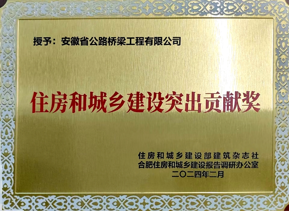 近日,住房和城鄉(xiāng)建設部建筑雜志社、合肥住房和城鄉(xiāng)建設局建設報告調研辦公室聯合頒發(fā)“住房和城鄉(xiāng)建設突出貢獻獎”,表彰在合肥大建設中作出突出貢獻的單位,公司榮獲殊榮。