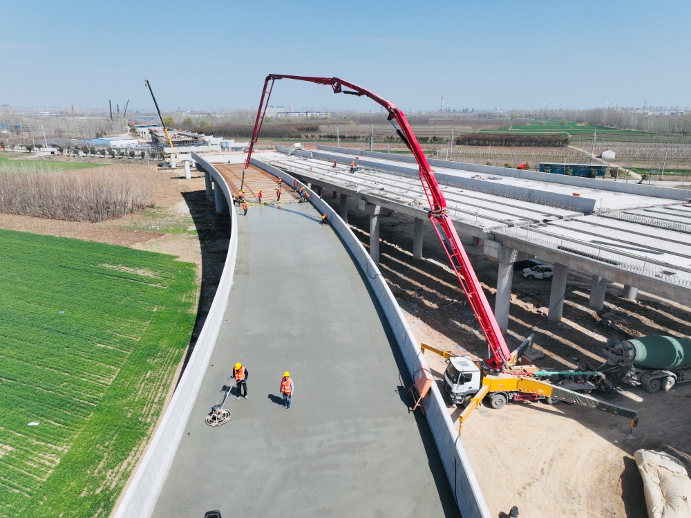 “施工過程中,我們嚴把原材料質(zhì)量、橋面清理、鋼筋網(wǎng)片鋪設(shè)、混凝土澆筑等各道工序,攤鋪后對混凝土表面進行二次收面,及時覆蓋土工布并進行灑水養(yǎng)生,使橋面達到內(nèi)實外美效果?!敝苌垸i說,全線橋面鋪裝總計88聯(lián),橋面鋪裝首件工程的順利澆筑,為后續(xù)橋面施工提供了技術(shù)支撐,截至3月底已累計完成10跨。