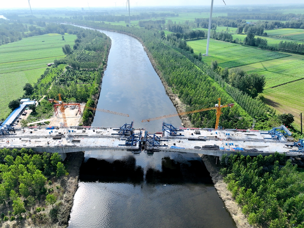 在皖北,面對緊張的工期和7月下旬以來連續(xù)的高溫天氣,徐淮阜高速淮北段項(xiàng)目巧施“涼策”,通過不斷優(yōu)化施工方案,合理配置資源和安排工序,以及采用“干兩頭、歇中間”的錯峰作業(yè)方式,推動生產(chǎn)高效運(yùn)轉(zhuǎn)。項(xiàng)目部還積極對各類混凝土配合比和外加劑進(jìn)行優(yōu)化,并在工后及時進(jìn)行覆蓋和灑水養(yǎng)護(hù),確保了高溫天氣下混凝土質(zhì)量,保障水穩(wěn)和橋梁規(guī)?;┕ぁ安粩鄼n”。