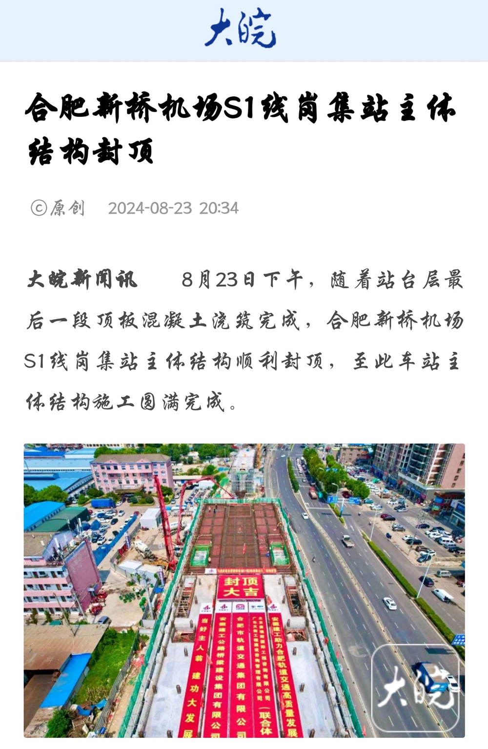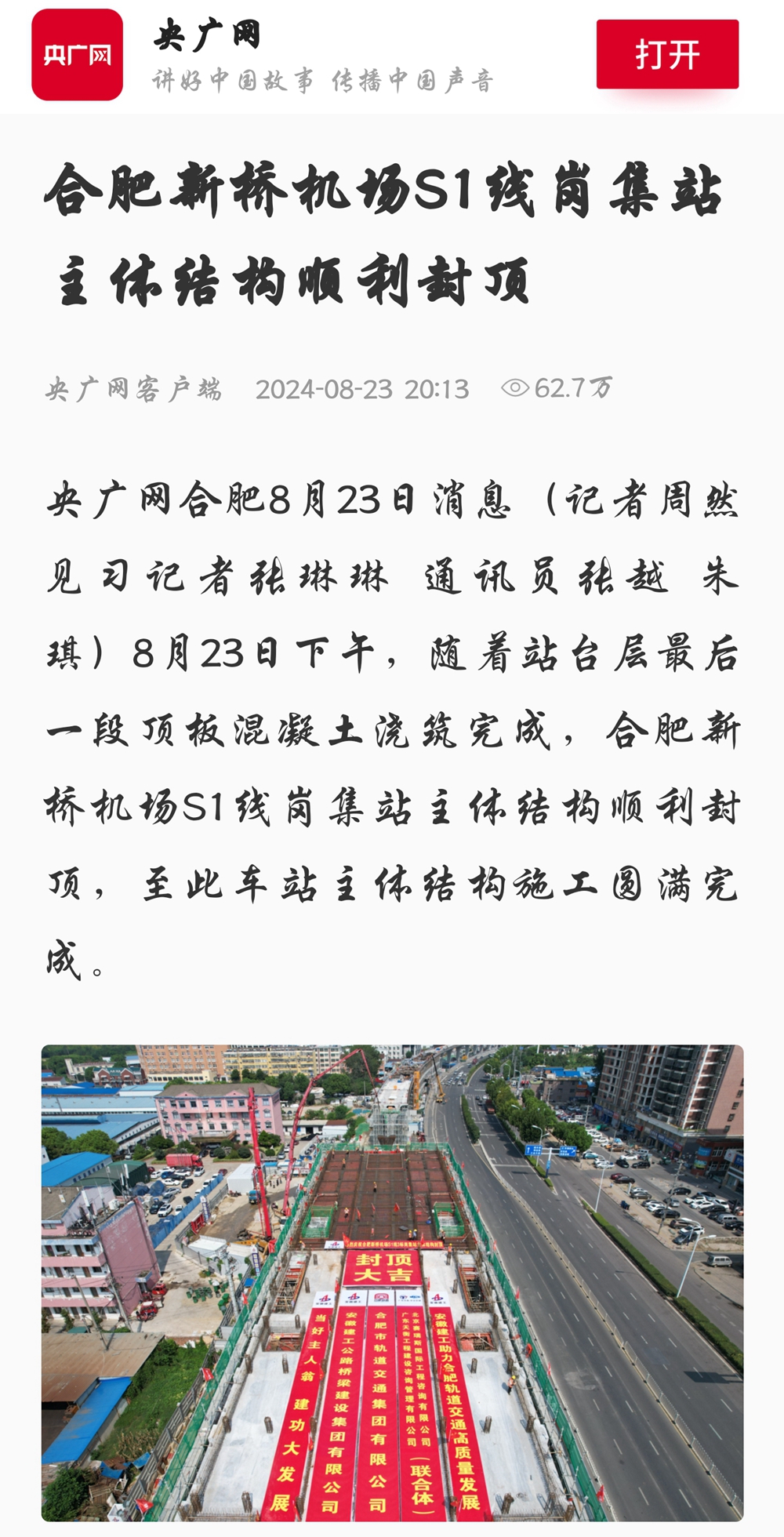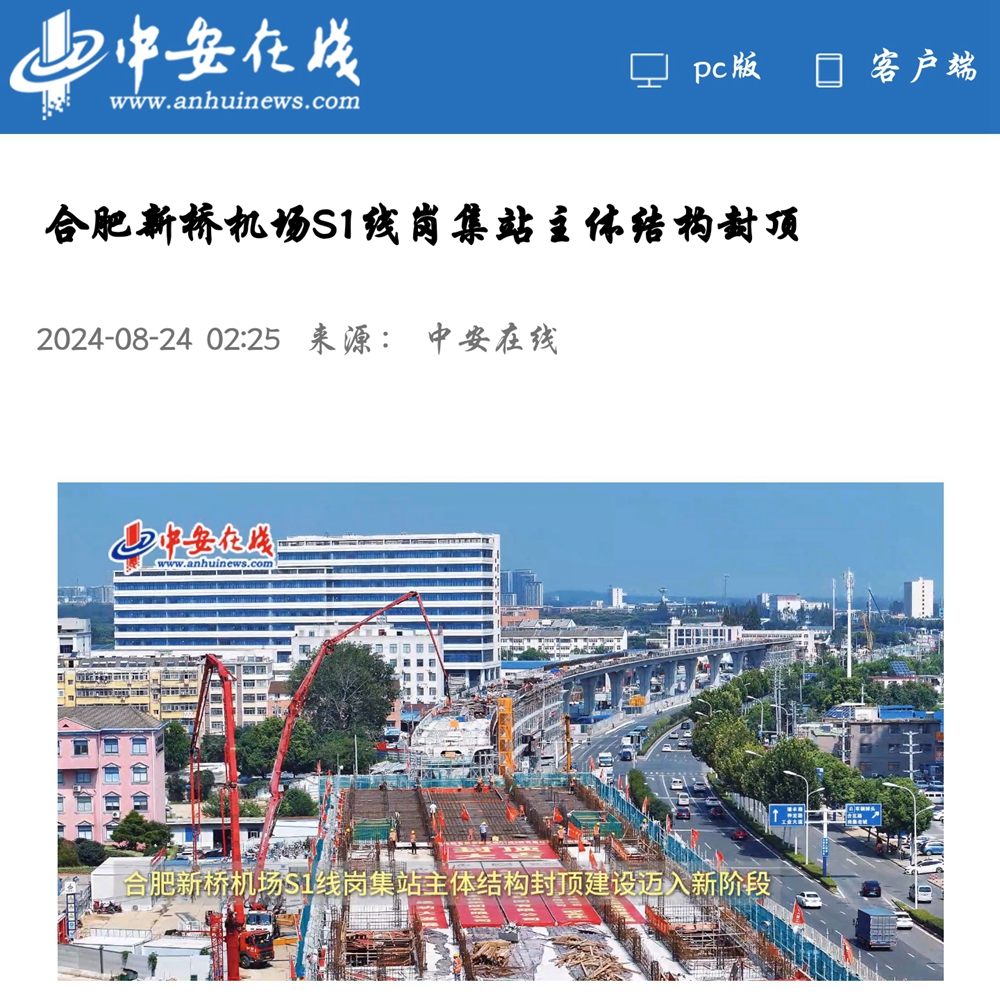 【名媒聚焦】央廣網(wǎng)、中安在線、安徽日報等主流媒體聚焦合肥新橋機場S1線項目崗集站主體結構封頂