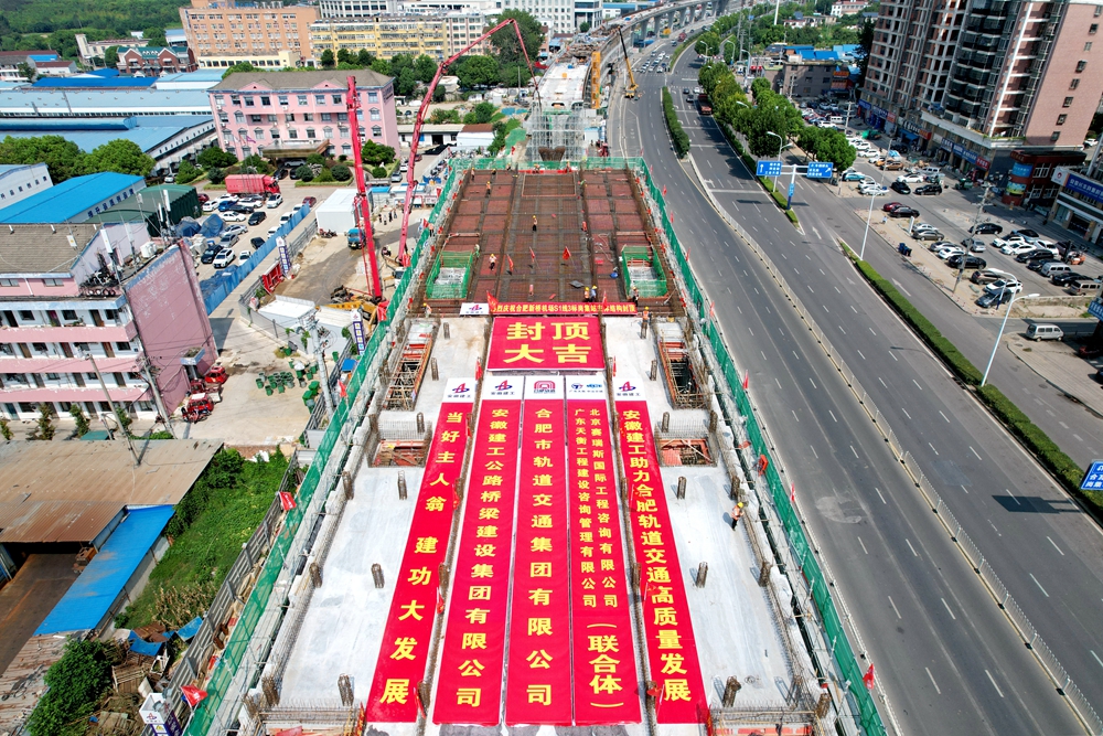 8月23日,隨著站臺層最后一段頂板混凝土澆筑完成,合肥新橋機場S1線崗集站主體結構順利封頂,標志著車站主體結構完工,站點建設邁入附屬結構施工新階段。