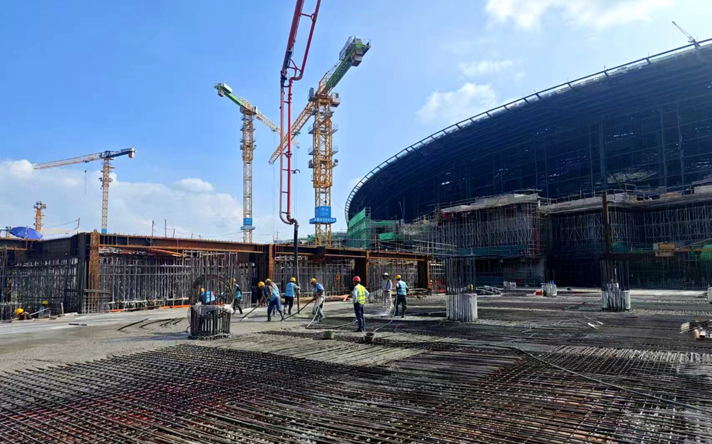 8月29日,合肥新橋國際機(jī)場綜合交通中心項目GTC A4-1區(qū)空腔層結(jié)構(gòu)混凝土澆筑完成。