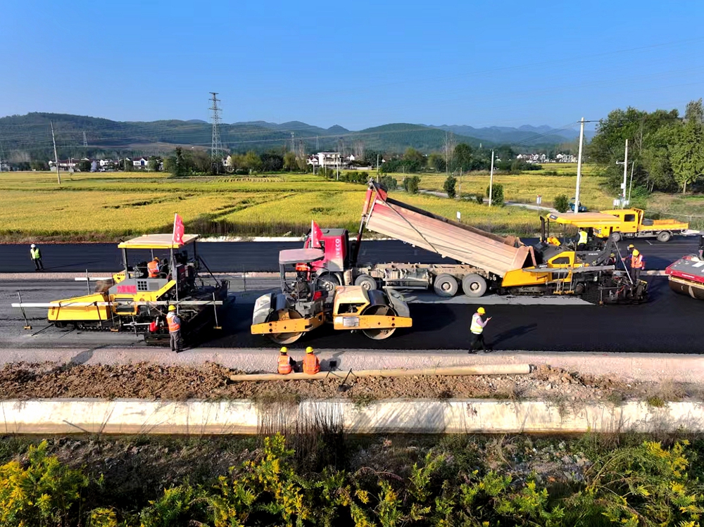 “目前項目已進入全面施工階段。項目控制性工程水東四號橋施工已經基本完成,水穩(wěn)已完成8.3公里施工,瀝青已完成4.7公里施工。為了保證工程進度,項目部正牢牢抓住近期晴好天氣的施工‘黃金期’,力爭保質保量按期完成建設任務?!表椖坎扛苯浝眈R佳杰說。