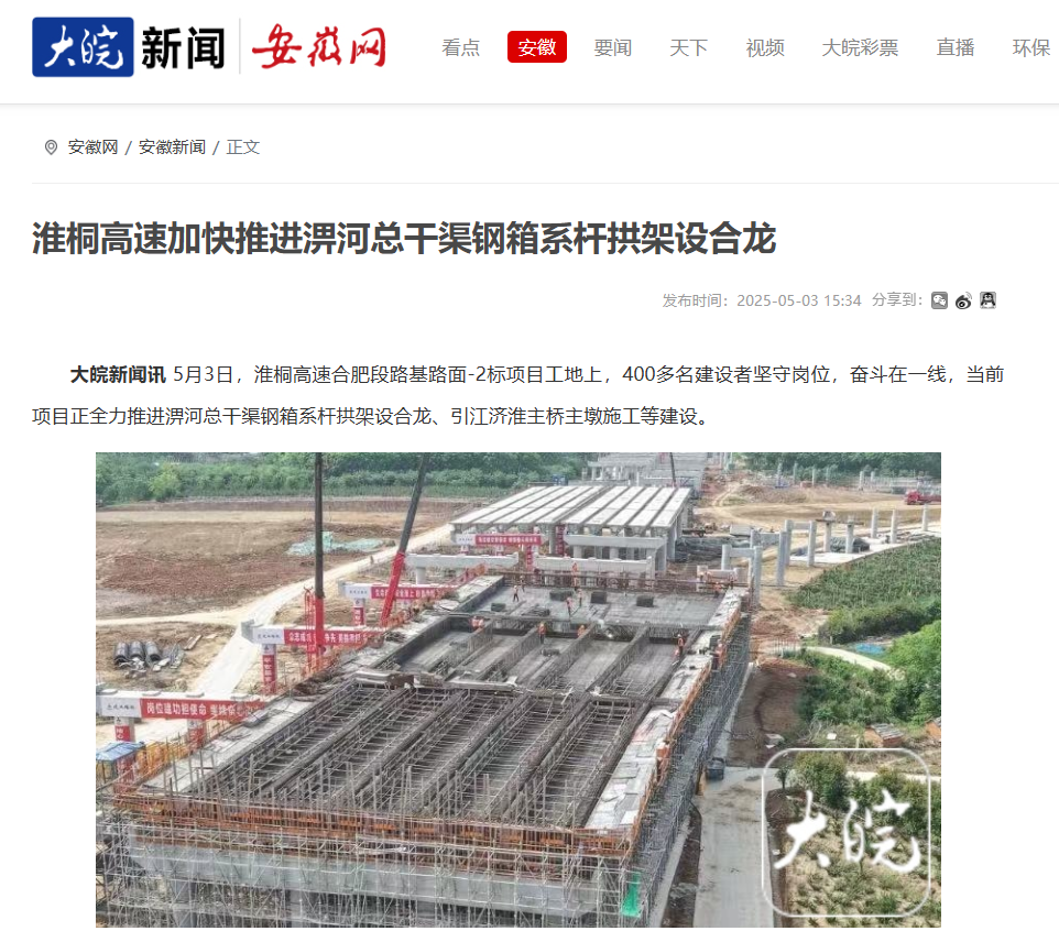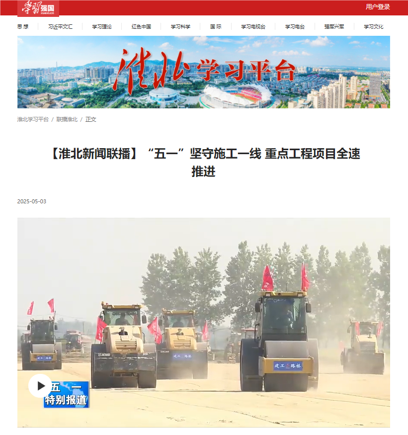 “五一”期間,公司承建的合肥新橋國際機(jī)場綜合交通中心項目、淮桐高速合肥段路基2標(biāo)、S235濉唐路三期項目、徐淮阜高速淮北段項目、S20長固高速路基01標(biāo)等一批項目“火力全開”,奮戰(zhàn)二季度,在江淮大地奏響項目建設(shè)“協(xié)奏曲”,受到央廣網(wǎng)、學(xué)習(xí)強(qiáng)國、安徽新聞聯(lián)播、大皖新聞等多家主流媒體的關(guān)注報道。