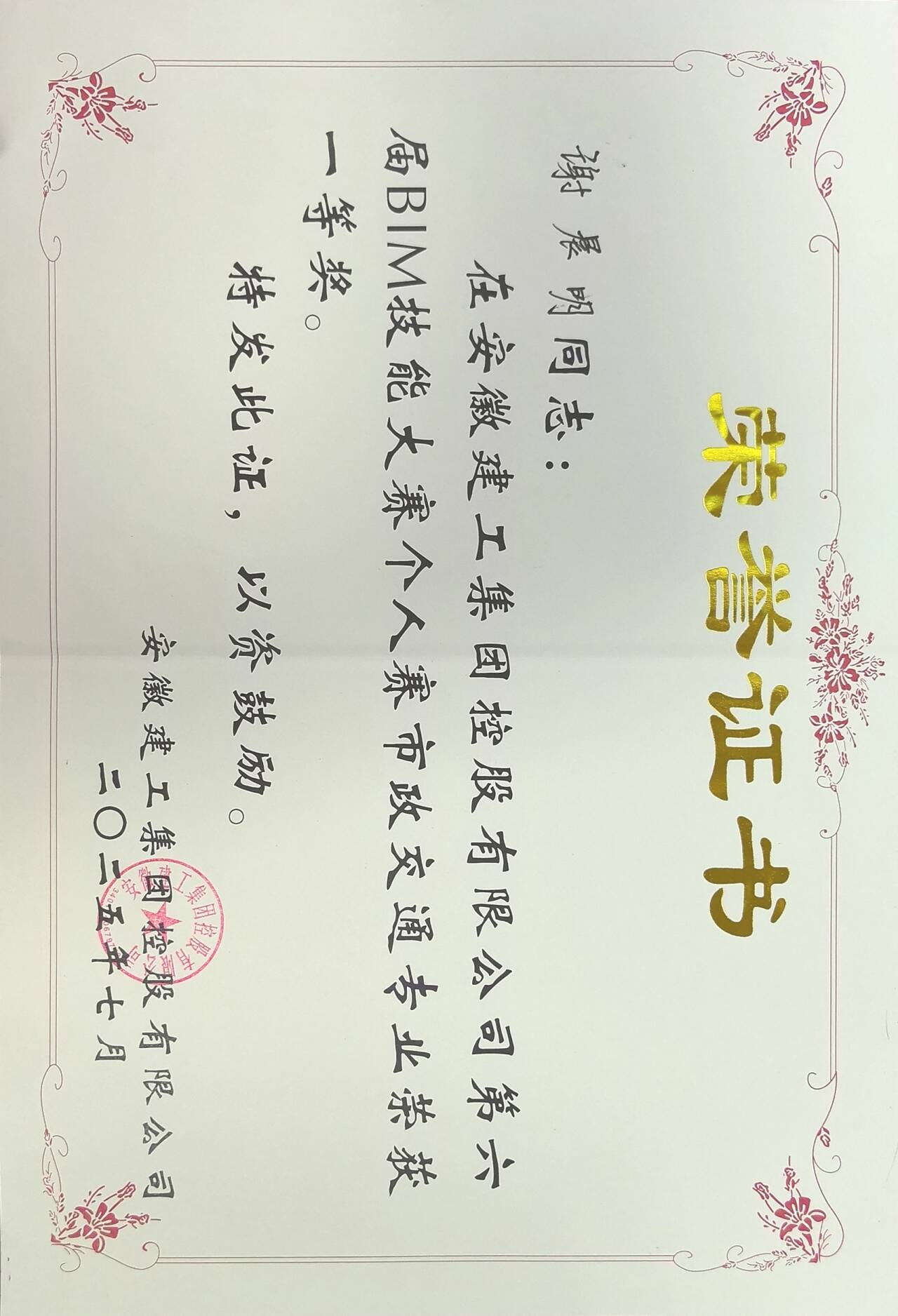 公司參賽隊伍由市政公司謝晨明、合肥分公司張安強和公路二公司章濱三人組成,其中謝晨明榮獲市政交通專業(yè)一等獎,張安強榮獲建筑機電專業(yè)一等獎,章濱榮獲市政交通專業(yè)三等獎。