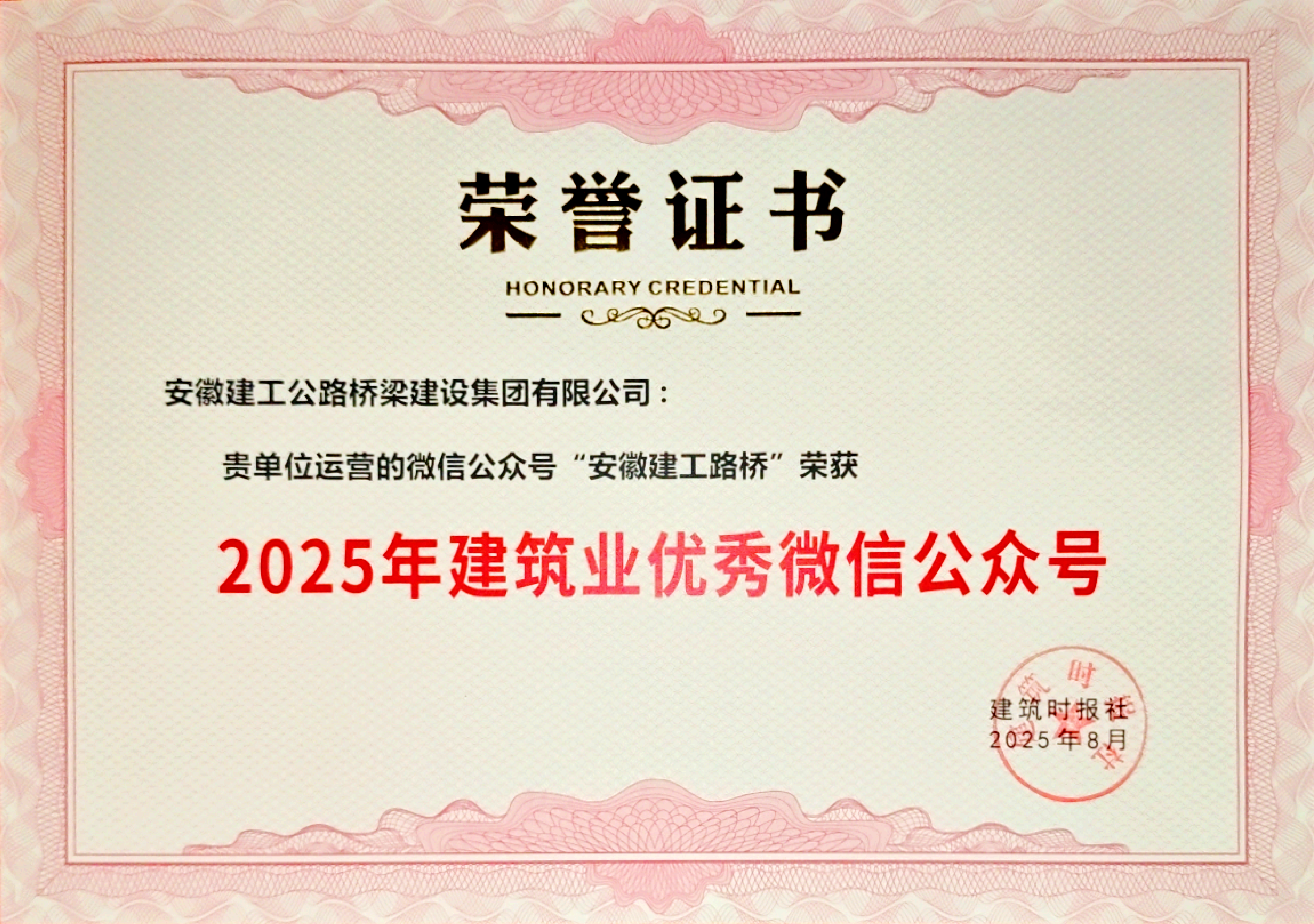 8月7日,2025年建筑業(yè)優(yōu)秀微信公眾號名單公布,公司微信公眾號“安徽建工路橋”再次獲此殊榮,連續(xù)4年登榜。