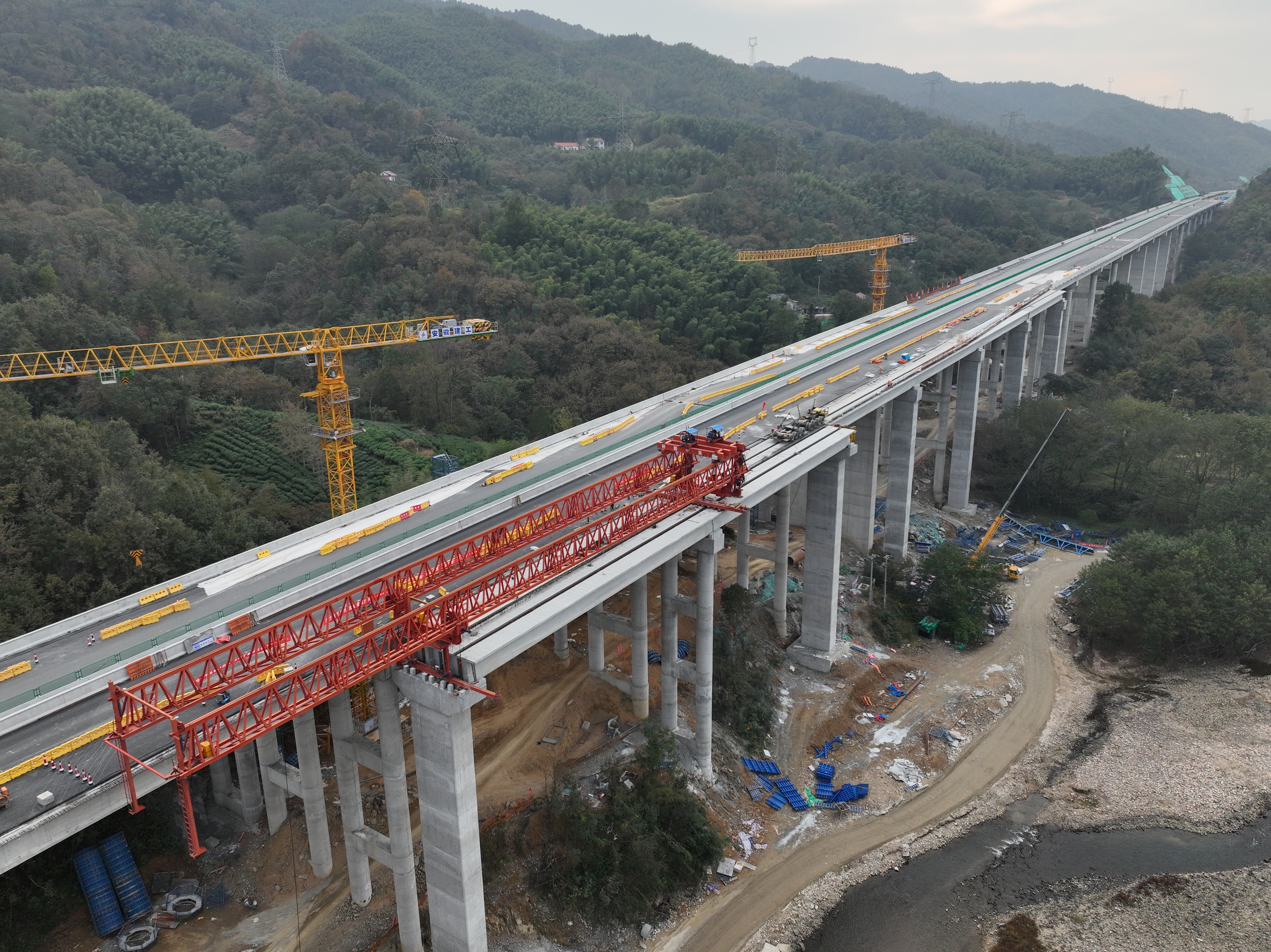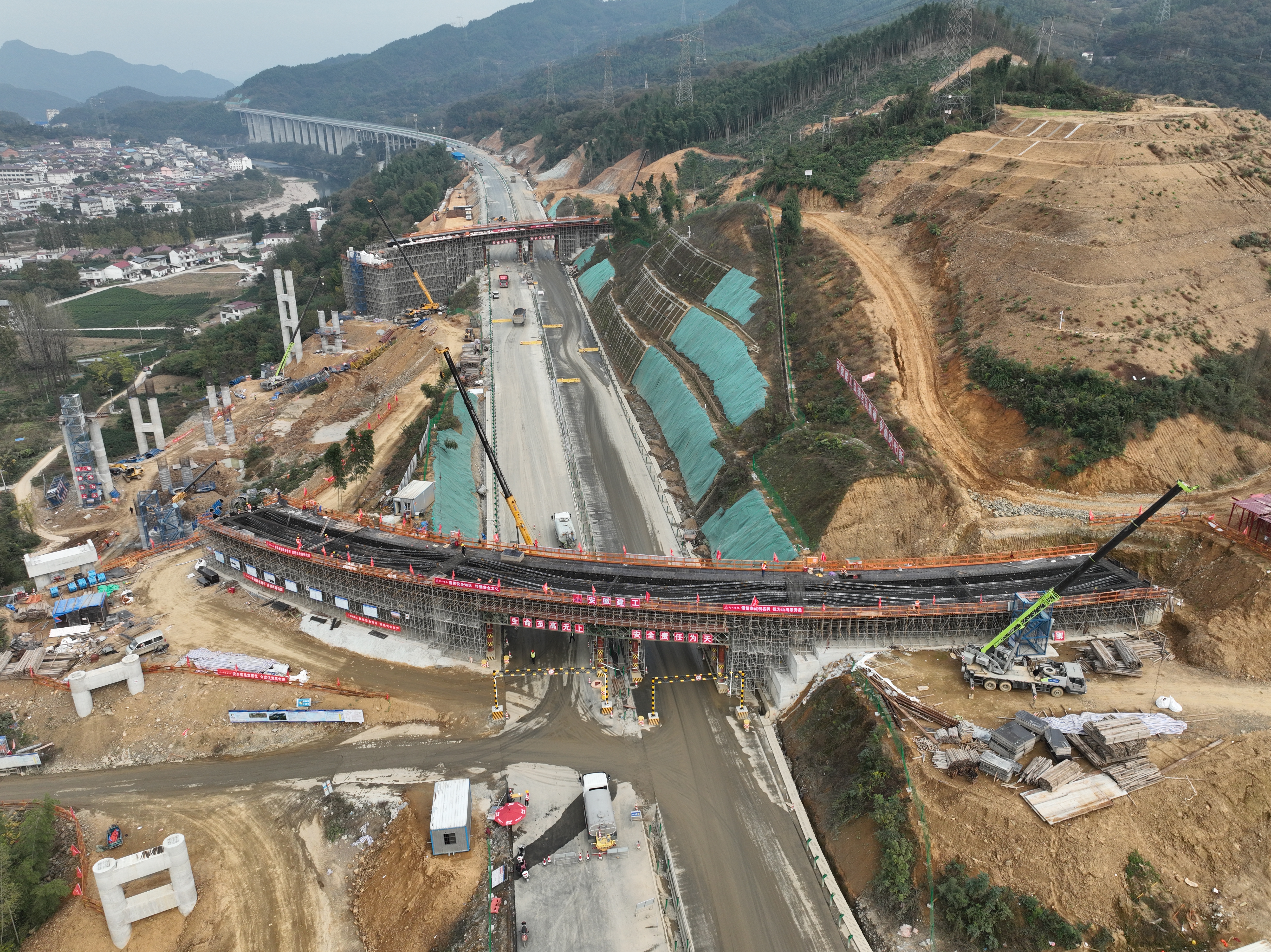 初冬的大別山層林盡染,安徽省六安市金寨縣天堂寨支線高速公路建設(shè)現(xiàn)場卻激戰(zhàn)正酣。11月,安徽建工路橋承建的一標(biāo)一分部實(shí)現(xiàn)雙重大突破:青山樞紐十里溪拼寬橋完成全線首片梁板毫米級(jí)精準(zhǔn)架設(shè),首聯(lián)現(xiàn)澆箱梁同步啟動(dòng)澆筑,標(biāo)志著工程正式進(jìn)入橋梁上部結(jié)構(gòu)施工階段,400余名建設(shè)者正晝夜搶抓冬季施工黃金期。