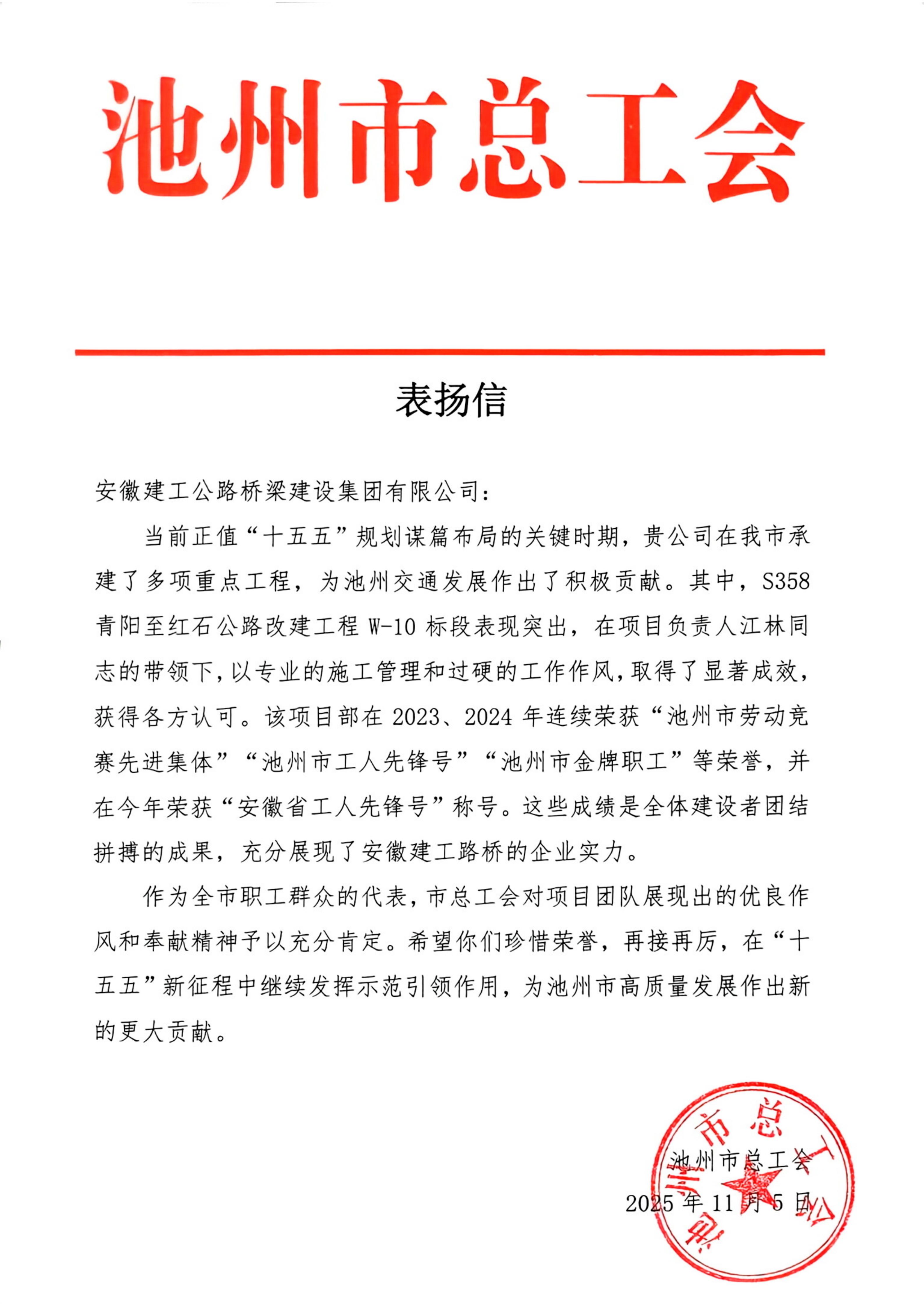公司承建S358青陽至紅石公路改建工程W-10標(biāo)段表現(xiàn)突出,以專業(yè)的施工管理和過硬的工作作風(fēng),取得了顯著成效,獲得各方認(rèn)可?!刂菔锌偣?/span>