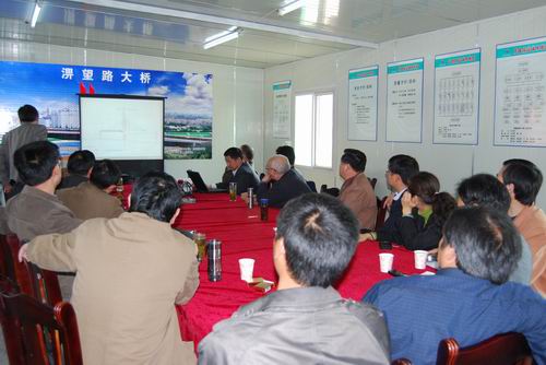 下午,觀摩團(tuán)一行又驅(qū)車來到了金桃橋項(xiàng)目。參觀了現(xiàn)場(chǎng)后,在金寨縣賓館會(huì)議室觀摩團(tuán)一行聽取了項(xiàng)目經(jīng)理劉曉晗的匯報(bào)。隨后各單位技術(shù)負(fù)責(zé)人就項(xiàng)目的箱拱吊裝施工等關(guān)鍵技術(shù)作了討論和交流。鄭總對(duì)該橋目前進(jìn)展情況表示滿意,并做了總結(jié)講話。同時(shí)對(duì)項(xiàng)目部積極探索和鉆研技術(shù)難點(diǎn)的精神表示贊賞。并對(duì)公司的質(zhì)量技術(shù)管理工作提出要求,要求格式進(jìn)一步結(jié)合深入學(xué)習(xí)實(shí)踐科學(xué)發(fā)展觀,繼續(xù)開展技術(shù)的開發(fā)挖掘,進(jìn)行技術(shù)的集成創(chuàng)新,研究、提煉項(xiàng)目工法和專利,為集團(tuán)公司技術(shù)創(chuàng)新多做工作,以增強(qiáng)集團(tuán)公司的核心競(jìng)爭(zhēng)力。