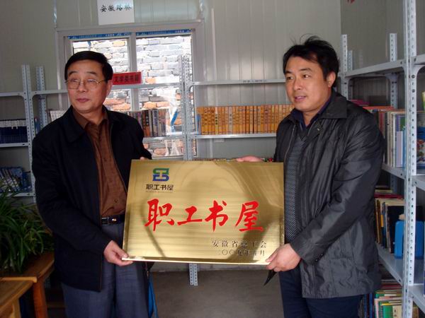劉主席首先來到項目部職工書屋,察看了書屋的軟硬件設(shè)施及借閱情況,并聽取了項目經(jīng)理江仲明關(guān)于項目施工及職工書屋創(chuàng)建情況的匯報。劉主席對書屋的建設(shè)和管理予以了肯定和贊許,并對書屋更好的發(fā)展提出了希望和要求:一、立足實際、講求實效;二、營造氛圍,大力宣傳;三、實現(xiàn)資源共享,發(fā)揮最大效益;四、總結(jié)經(jīng)驗、持續(xù)發(fā)展。邢應(yīng)梅書記還饒有興趣地翻看了圖書借閱登記表,了解職工借閱圖書情況,并對進(jìn)一步完善職工書屋的建設(shè)提出了幾點建議。隨后舉行了簡短的授牌儀式,劉主席向項目經(jīng)理江仲明轉(zhuǎn)授了由安徽省總工會頒發(fā)的“職工書屋”牌匾,并代表集團(tuán)工會向職工書屋贈送了各類書籍300余冊。