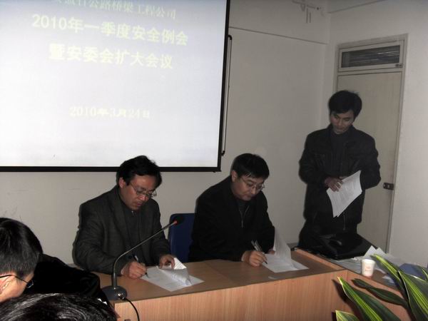 首先,安全生產(chǎn)管理部傳達(dá)了集團(tuán)公司2009年四季度安委會擴(kuò)大會議精神及《安委會議事規(guī)則》,安委會成員討論了公司《項(xiàng)目安全管理責(zé)任考核暫行辦法》及《2010年公司安全管理工作計(jì)劃》。