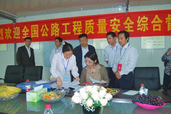 1011,交通運輸部公路工程質(zhì)量安全綜合督導(dǎo)組到公司承建的宣寧高速02標進行督查。交通運輸部工程質(zhì)量監(jiān)督局副局長張曉冰、江蘇省交通運輸廳副廳長丁峰,以及江西省、重慶市、北京市等質(zhì)監(jiān)站領(lǐng)導(dǎo)分別對宣寧高速02標綜合、橋隧、內(nèi)業(yè)三方面進行了全面細致地檢查。安徽省交通運輸廳副廳長羅寧、省交通質(zhì)監(jiān)站站長何光、書記殷治寧、省高速控股集團副總經(jīng)理錢東升等陪同檢查。