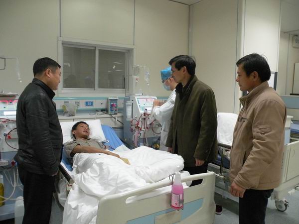 元月19日上午,中共十七大代表、全國勞模、安徽建工集團三建公司設備租賃公司副經理李朝進、集團工會副主席吳曉伍一行,在公司工會主席胡運春的陪同下,到醫(yī)院看望慰問了公司患尿毒癥的困難員工許尋,并送去了慰問金。