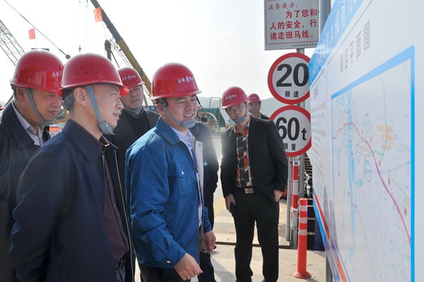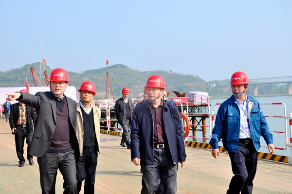集團董事長、黨委書記趙時運等領導視察黃河特大橋施工現(xiàn)場
