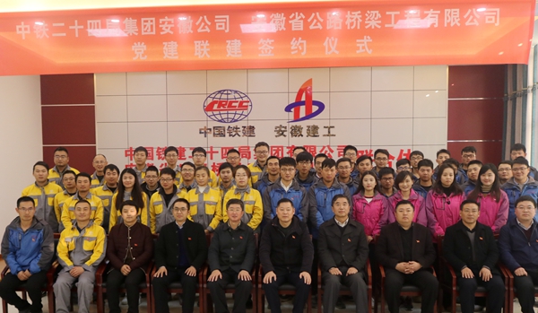 12月12日下午,合肥軌道交通4號(hào)線01標(biāo)聯(lián)合體中鐵二十四局安徽公司項(xiàng)目部黨支部和安徽省路橋公司項(xiàng)目黨支部黨建聯(lián)建簽約儀式隆重舉行。安徽路橋公司黨委書(shū)記、董事長(zhǎng)、總經(jīng)理孫學(xué)軍,紀(jì)委書(shū)記林緒坤,副總經(jīng)理任杰,中鐵二十四局集團(tuán)安徽公司黨委書(shū)記房明州,黨委副書(shū)記、紀(jì)委書(shū)記侯衛(wèi)超等領(lǐng)導(dǎo)出席。