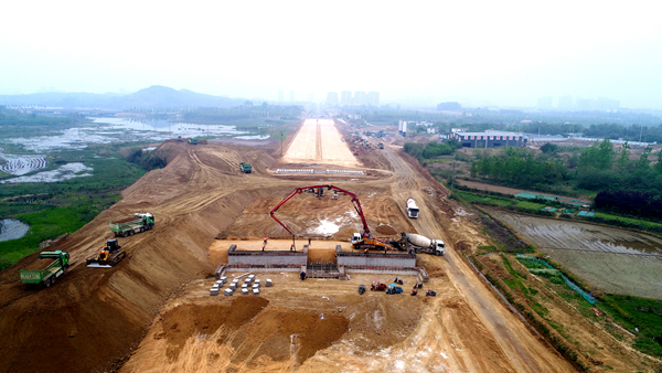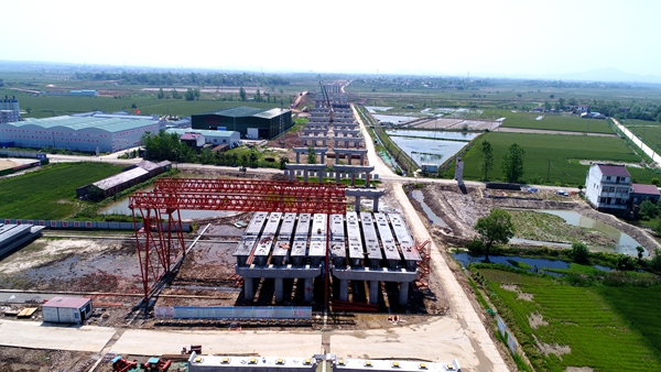 3月25日,羅埠河特大橋主橋最后一個(gè)承臺(tái)歷時(shí)11個(gè)小時(shí)的澆筑,順利完成,自此進(jìn)入地面以上施工。4月11日,徽州大道(廬江段)項(xiàng)目全線首片箱梁順利架設(shè),較業(yè)主下達(dá)的架梁工期提前了半個(gè)多月,施工進(jìn)展再次取得突破,標(biāo)志著項(xiàng)目全面進(jìn)入上部結(jié)構(gòu)施工階段。