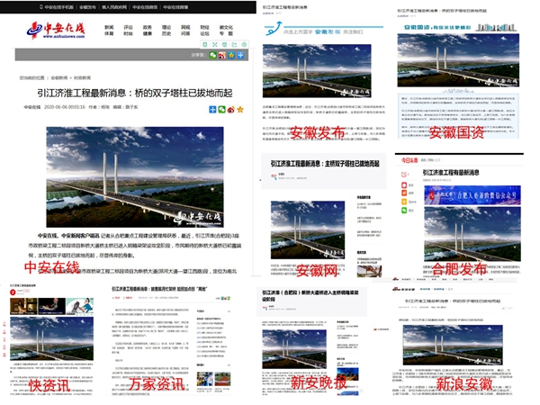 引江濟(jì)淮(合肥段)3座市政橋梁工程二標(biāo)段進(jìn)展得到省市級主流媒體廣泛關(guān)注報道