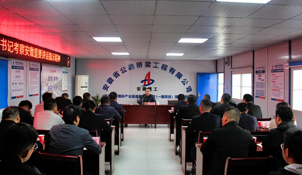在全省上下深入學(xué)習(xí)宣傳貫徹習(xí)近平總書記考察安徽重要講話指示精神之際,按照集團(tuán)黨委統(tǒng)一部署要求,結(jié)合領(lǐng)導(dǎo)班子成員黨支部工作聯(lián)系點(diǎn)制度,10月16日下午,公司黨委副書記、總經(jīng)理錢申春深入道路分公司壽縣新橋產(chǎn)業(yè)園道路擴(kuò)展工程項目部宣講習(xí)近平總書記考察安徽重要講話指示精神。他強(qiáng)調(diào),要充分認(rèn)識習(xí)近平總書記考察安徽重要講話指示精神的重大意義,推動學(xué)習(xí)宣傳貫徹工作走深走實(shí),確保習(xí)近平總書記重要講話精神在項目一線得到全面貫徹落實(shí),進(jìn)而轉(zhuǎn)化為推動項目生產(chǎn)經(jīng)營管理的強(qiáng)大動力和生動實(shí)踐。