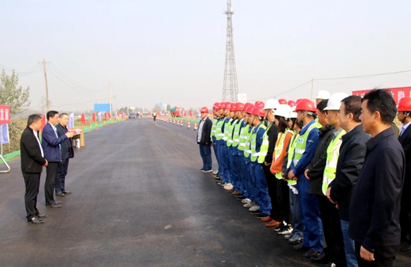 10月30日上午,歷經(jīng)七個月的奮戰(zhàn),淮北G237項目路面工程全線貫通?;幢笔薪煌ň贮h組書記、局長韓海林,副局長苗中治,淮北市公路管理服務中心黨委書記、主任楊國棟,公司黨委副書記、總經(jīng)理錢申春,黨委委員、副總經(jīng)理杜海峰到場祝賀,并看望慰問全體參建人員。