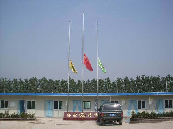 今天是5.12汶川地震一周年,一大早,泗許高速亳州段01標(biāo)項(xiàng)目部便降半旗表示沉痛哀悼。
