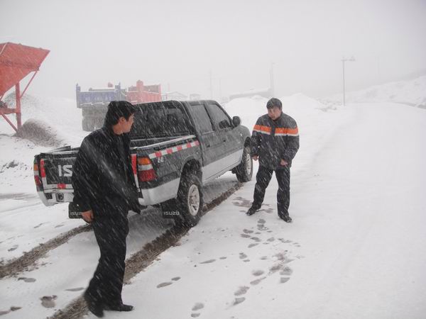 上午,項(xiàng)目部經(jīng)理陳莘來(lái)到位于海拔3800米32K拌合站,檢查拌合站機(jī)械車輛的安全防凍工作。要求項(xiàng)目部各施工區(qū)域不僅要注重雪天的人員安全,更要注重機(jī)械車輛的保暖防凍工作,努力延長(zhǎng)機(jī)械的使用壽命,提高機(jī)械的使用功率和效率。