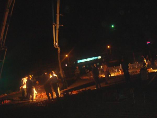 傍晚時分,項目部組織精干力量、調(diào)集性能良好的機械設備陸續(xù)進入引橋澆注場地。18:00隨著一陣隆隆的炮竹聲響過,淠望路大橋引橋首跨上部結(jié)構的混凝土澆注便正式開始了,此次澆筑的混凝土位于大橋10號墩與11號墩之間,混凝土體積320方?,F(xiàn)場施工人員克服重重困難,把安徽路橋人的特別能吃苦特別能戰(zhàn)斗的精神發(fā)揮得淋漓盡致;經(jīng)過十多個小時的連續(xù)工作,于2009年6月22日凌晨五點圓滿完成了首跨混凝土的澆筑,受到業(yè)主、監(jiān)理單位的肯定和贊揚,同時也為今后引橋上部結(jié)構混凝土的澆筑工作積累了經(jīng)驗。