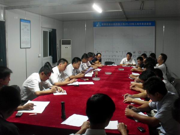 8月9號晚7點半,績黃高速02標(biāo)項目部在項目會議室召開生產(chǎn)經(jīng)營分析會議。項目經(jīng)理張慶書,項目副經(jīng)理王守武、鳳爾飛,項目總工王秋華,各部門負(fù)責(zé)人及成員參加了會議。