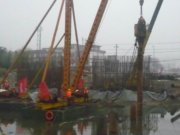 宋斗灣路項(xiàng)目進(jìn)入打設(shè)河中鋼管樁階段