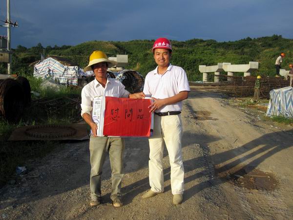 入夏以來(lái),黃祁高速公路建設(shè)沿線地區(qū)持續(xù)高溫,廣大項(xiàng)目員工冒著高溫酷暑始終堅(jiān)守在一線,為加快施工進(jìn)度而不懈努力。2010718日下午,我部項(xiàng)目經(jīng)理黃華及項(xiàng)目部主要管理人員深入施工現(xiàn)場(chǎng),慰問(wèn)廣大員工,檢查各工區(qū)施工隊(duì)伍防暑降溫工作的開展情況,并將防暑降溫用品發(fā)放到各工區(qū)施工隊(duì)。