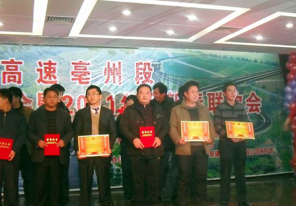 2011121,泗許高速公路亳州段建設(shè)辦舉辦了2010年度總結(jié)表彰會(huì)。會(huì)上,泗許高速公路亳州段建設(shè)辦主任馬祖橋?qū)?SPAN lang=EN-US>2010年度泗許高速公路亳州段全線工作進(jìn)行了全面的總結(jié),并對(duì)優(yōu)秀個(gè)人及集體進(jìn)行表彰。我泗許01標(biāo)榮獲2010年度優(yōu)秀項(xiàng)目部稱號(hào)。