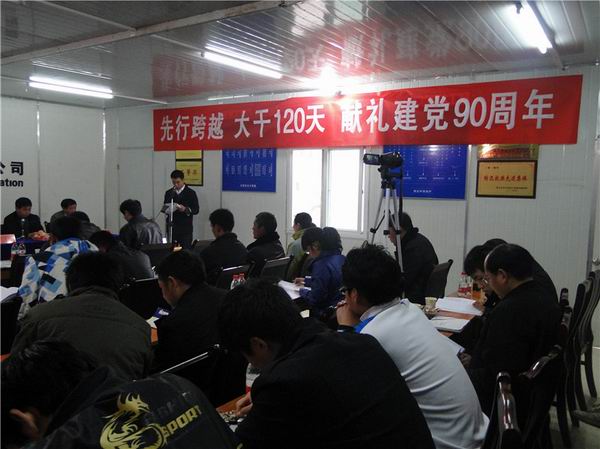 會(huì)議首先由項(xiàng)目經(jīng)理王遠(yuǎn)勝做題為《凝心聚力、奮發(fā)拼搏,實(shí)現(xiàn)總目標(biāo),創(chuàng)新超越,爭(zhēng)創(chuàng)一流,奪取新勝利》的動(dòng)員講話,分析項(xiàng)目生產(chǎn)形勢(shì),實(shí)事求是的指出當(dāng)前項(xiàng)目面臨的困難,提出我們掀起大干高潮的優(yōu)勢(shì)和有利條件,制定了“大干120天,奪取6月份雙幅貫通”的競(jìng)賽目標(biāo)。大會(huì)學(xué)習(xí)了指揮部相關(guān)文件,通過樂競(jìng)賽實(shí)施方案和獎(jiǎng)勵(lì)實(shí)施辦法,項(xiàng)目黨支部、團(tuán)支部發(fā)出勞動(dòng)競(jìng)賽倡議書,施工隊(duì)代表做了競(jìng)賽承諾。