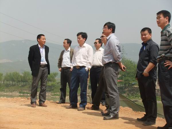 何局長首先來到我部北山河大橋施工現(xiàn)場,觀看主橋11#墩部位插板樁完成后的主墩承臺開挖情況及引橋樁基的施工情況。在聽完項目經(jīng)理冷峰對當(dāng)前大橋施工的系統(tǒng)介紹后,何局長對我部大橋施工的質(zhì)量控制及安全管理提出了具體要求。