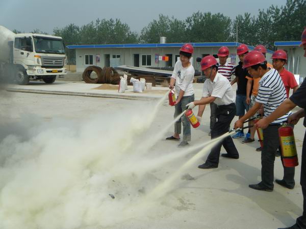 鳳陽縣消防支隊派出業(yè)務(wù)骨干進(jìn)行培訓(xùn)和現(xiàn)場指導(dǎo)演練,重點(diǎn)對施工現(xiàn)場安全的隱患點(diǎn)做了詳細(xì)分析,對消防滅火器材的種類、型號、使用方法進(jìn)行了講解和現(xiàn)場指導(dǎo)。本次消防演練由技術(shù)指揮組、搶救組組成。參加培訓(xùn)人員在掌握基本常識基礎(chǔ)上對施工現(xiàn)場所配備的干粉滅火器進(jìn)行實際操作,進(jìn)行滅火演練。