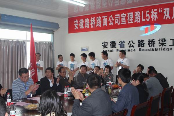 副總經(jīng)理陳智代表公司向全體參會人員宣讀了皖路橋路面辦〔2012〕5號文件——《關(guān)于開展宣貍改建工程L5標(biāo)“雙月會戰(zhàn)”勞動競賽的通知》;路面公司工程部長王小杰、總經(jīng)濟(jì)師袁青嶺分別詳細(xì)闡述了活動的實(shí)施方案和具體獎(jiǎng)勵(lì)措施。