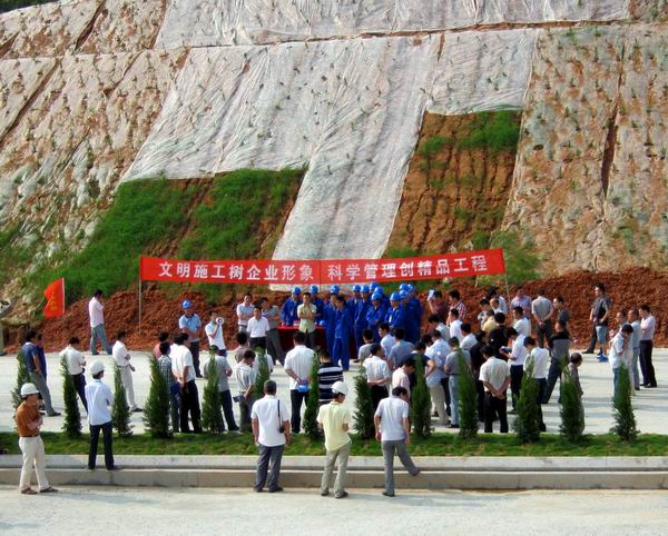 觀摩會上,我部項目經理薛斌對我標段工程概況、標準段施工流程、工藝改進及優(yōu)點進行了簡要的介紹??偙O(jiān)辦黃總監(jiān)發(fā)表講話,他對我標段的施工進度及此次觀摩段施工標準化和中央分隔帶綠化表示滿意,對我部在施工過程中表現(xiàn)出來的不怕吃苦的戰(zhàn)斗精神表示贊賞,希望各施工單位以此次觀摩會為契機,在今后施工中,始終貫徹好項目辦的標準化施工要求,優(yōu)化施工工藝、改進施工方法,把撫吉高速建設成標準高、質量優(yōu)、環(huán)境美的精品工程。