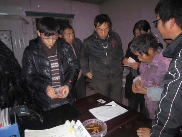 為保障農(nóng)民工合法權(quán)益,貫徹落實公司相關(guān)文件精神。徐明11標項目于12月11晚組織綜合部、財務部、安全部以及工程部等相關(guān)人員深入施工一線開展農(nóng)民工工資發(fā)放工作。為了確保工資發(fā)放過程萬無一失,我該項目部遵循“不錯發(fā)一個,不漏發(fā)一個”的原則,嚴格執(zhí)行弄農(nóng)民工工資發(fā)放程序:核對身份證—簽字確認—領(lǐng)取工資,并對整個過程進行了攝像監(jiān)督,有條不紊的順利完成了工資發(fā)放工作。