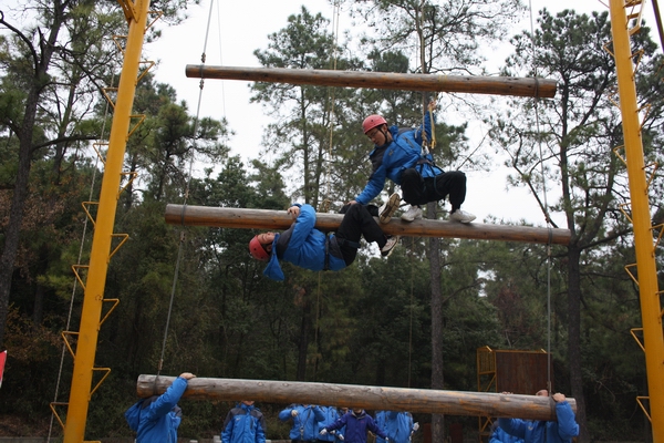 在培訓(xùn)基地,學(xué)員被隨機分為三組,通過民主討論選出各自的隊長、隊名、隊歌和口號。在隨后的拓展培訓(xùn)中,三組隊員依靠團結(jié)協(xié)作、頑強拼搏、毫不畏懼的精神順利完成了“背摔、斷橋、天梯、空中單杠、求生墻”等挑戰(zhàn)性項目,通過這些項目的挑戰(zhàn),經(jīng)過帶訓(xùn)老師針對性的啟發(fā)和指導(dǎo),使廣大學(xué)員加深了對團隊協(xié)作、互助互信的理解,達到了挑戰(zhàn)自我、熔煉團隊、提升溝通與合作的目的。