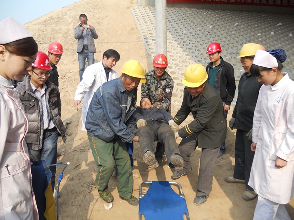 演練開(kāi)始,中山醫(yī)院外科何主任在項(xiàng)目部會(huì)議室給參演人員講解了一些外科傷害常識(shí)及應(yīng)急救援措施,外科醫(yī)生朱醫(yī)生在施工現(xiàn)場(chǎng)向大家模擬了救援方法、動(dòng)作,并講解了注意事項(xiàng)。本次演練在項(xiàng)目部各部門及橋梁施工隊(duì)的積極參與和配合下取得了圓滿成功,提高了該項(xiàng)目部應(yīng)急響應(yīng)能力。
